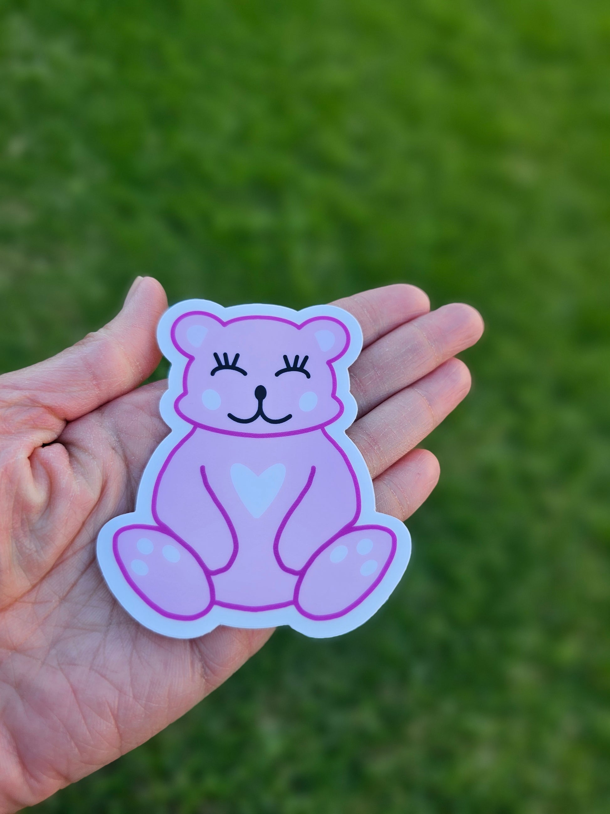 Get ready to bear-ly contain your excitement for our Beary bear pink waterproof clear sticker! This cute and quirky sticker features our lovable Beary bear design in a darling pink color. Stick it on your water bottle, laptop, or phone case and show off your own bear-y good style.