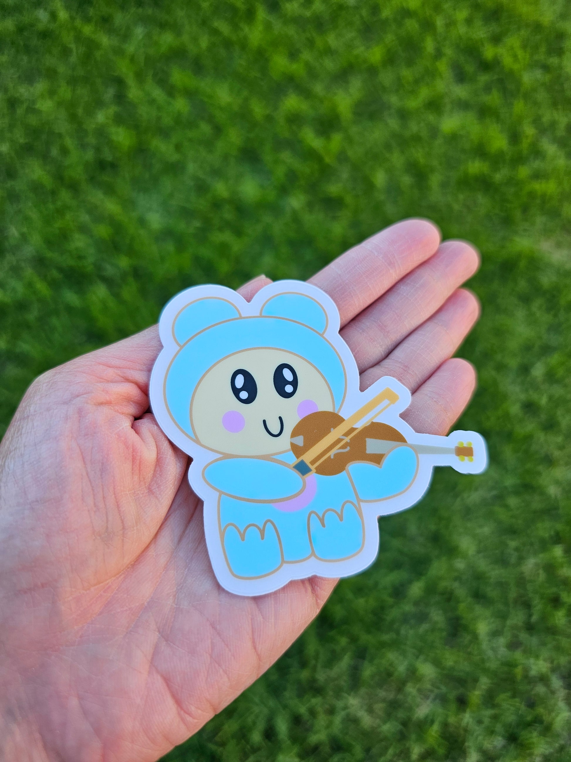 Add a touch of whimsy and music to your life with the Blue Momofoco playing violin sticker. This cute and waterproof sticker is perfect for decorating your laptop, water bottle, or any smooth surface. Express your love for music and humor with this playful addition to your collection.
