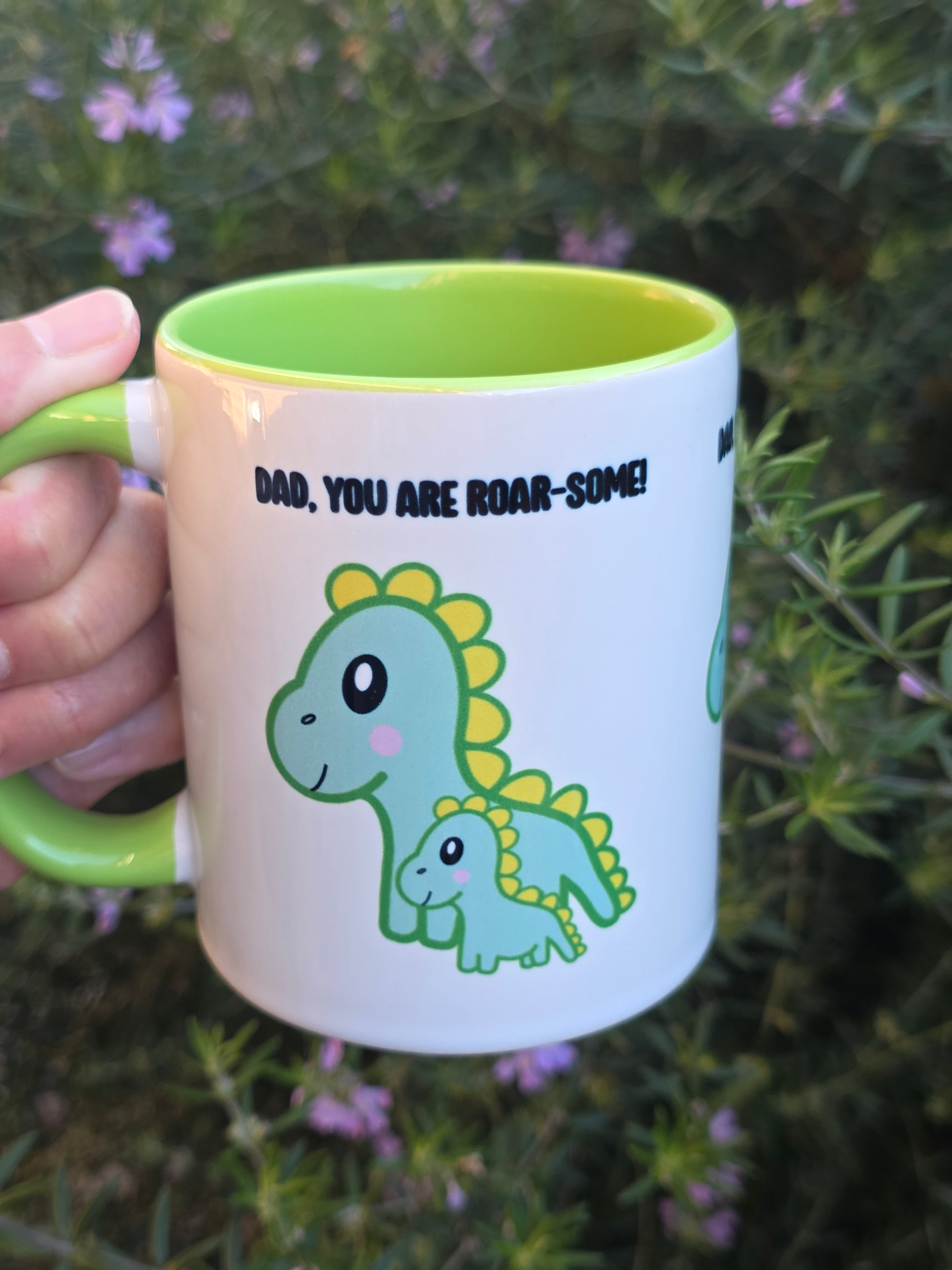 Add a playful roar to your daily routine with the Dino Dad mug. Featuring charming, cute dinosaurs, this mug makes every coffee or tea moment more fun and heartwarming. It's the perfect way to brighten your mornings and show off your dinosaur-loving spirit with every sip. Perfect gift for your Dad that is roar-some!