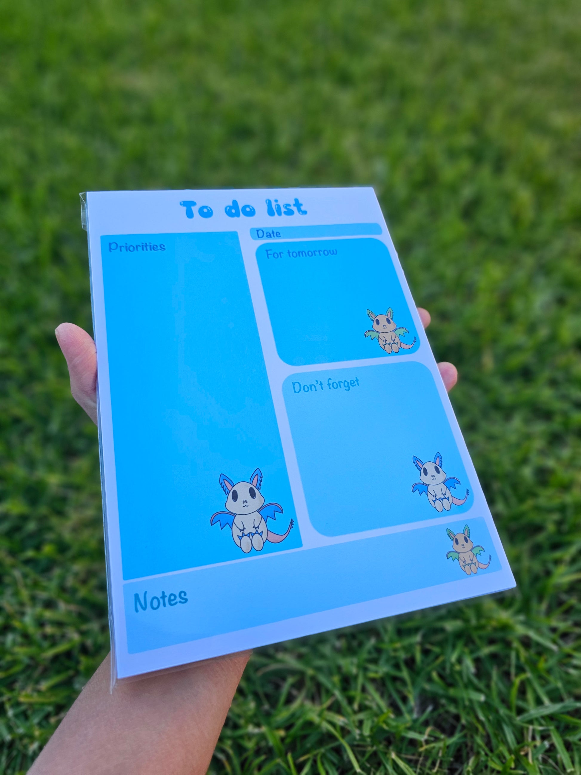 Organize your day with the Droggo blue A5 notepad featuring a charming Droggo dragon design. Keep track of tasks with the included to-do list. Perfect for those who appreciate cuteness and functionality.