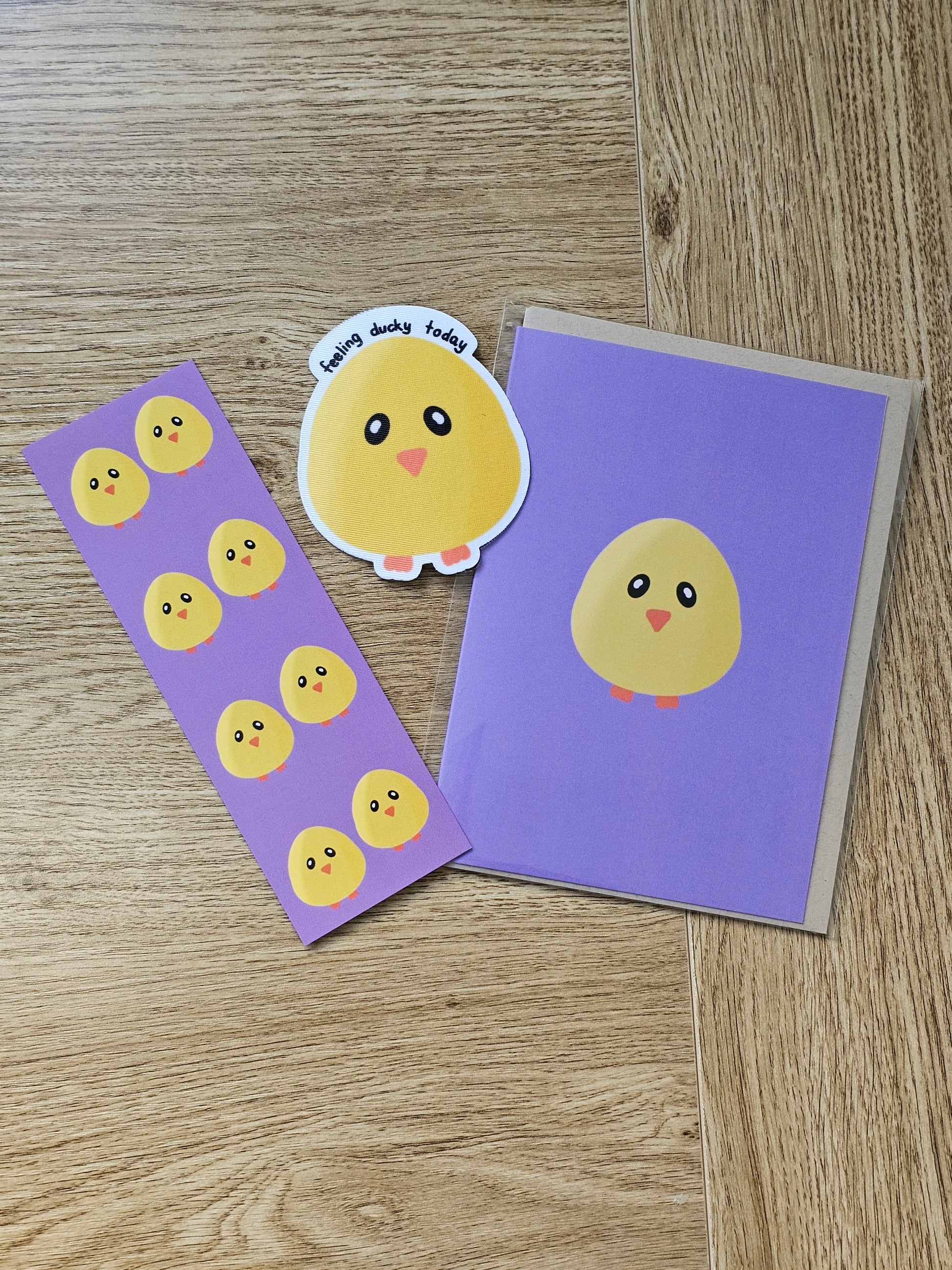 Add a touch of cuteness to any occasion with our Duck lovers bundle! This bundle features our DiDi duckling greeting card, bookmark, and "feeling ducky today" fabric sticker. Delight any duck lover with this perfect gift combo.
