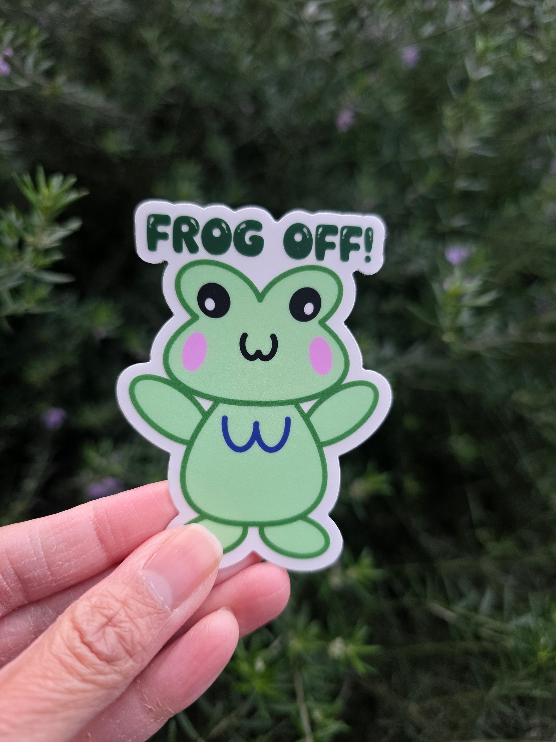 Brighten up your gear with the Froggo Frog Off waterproof sticker. Cute and durable, this sticker sticks securely to your water bottles, sewing machine, cricut, printers laptops, or notebooks, and so much more resisting water and wear. Perfect for adding a playful touch that lasts wherever you take it.