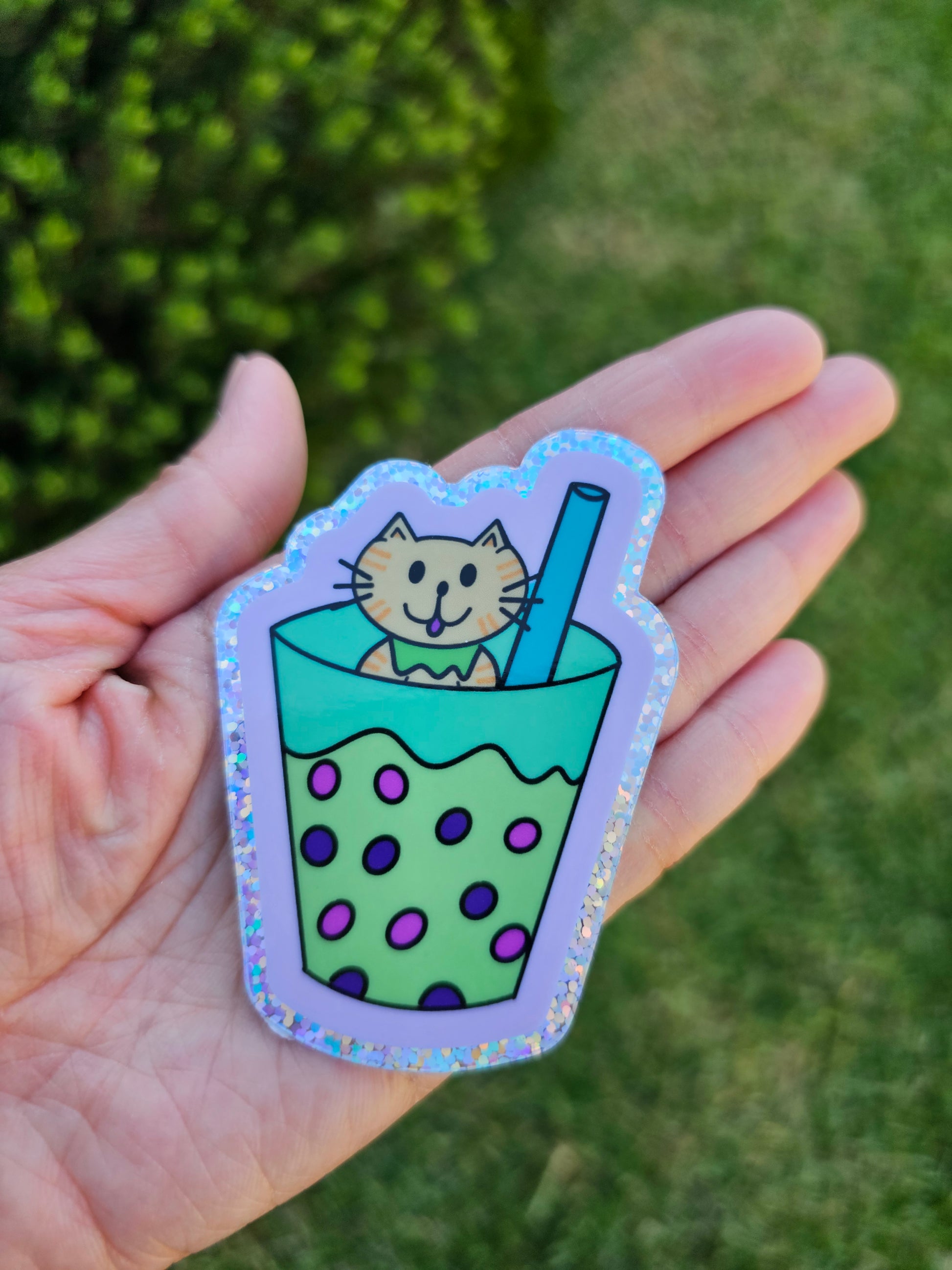 Get ready to purr-fectly express your love for cats with our Kitty Cat in Bubble Tea waterproof glitter sticker! This adorable sticker is not only cute, but also durable and perfect for decorating your water bottles, laptops, and more. So add a whisker of fun to your life with this quirky sticker!