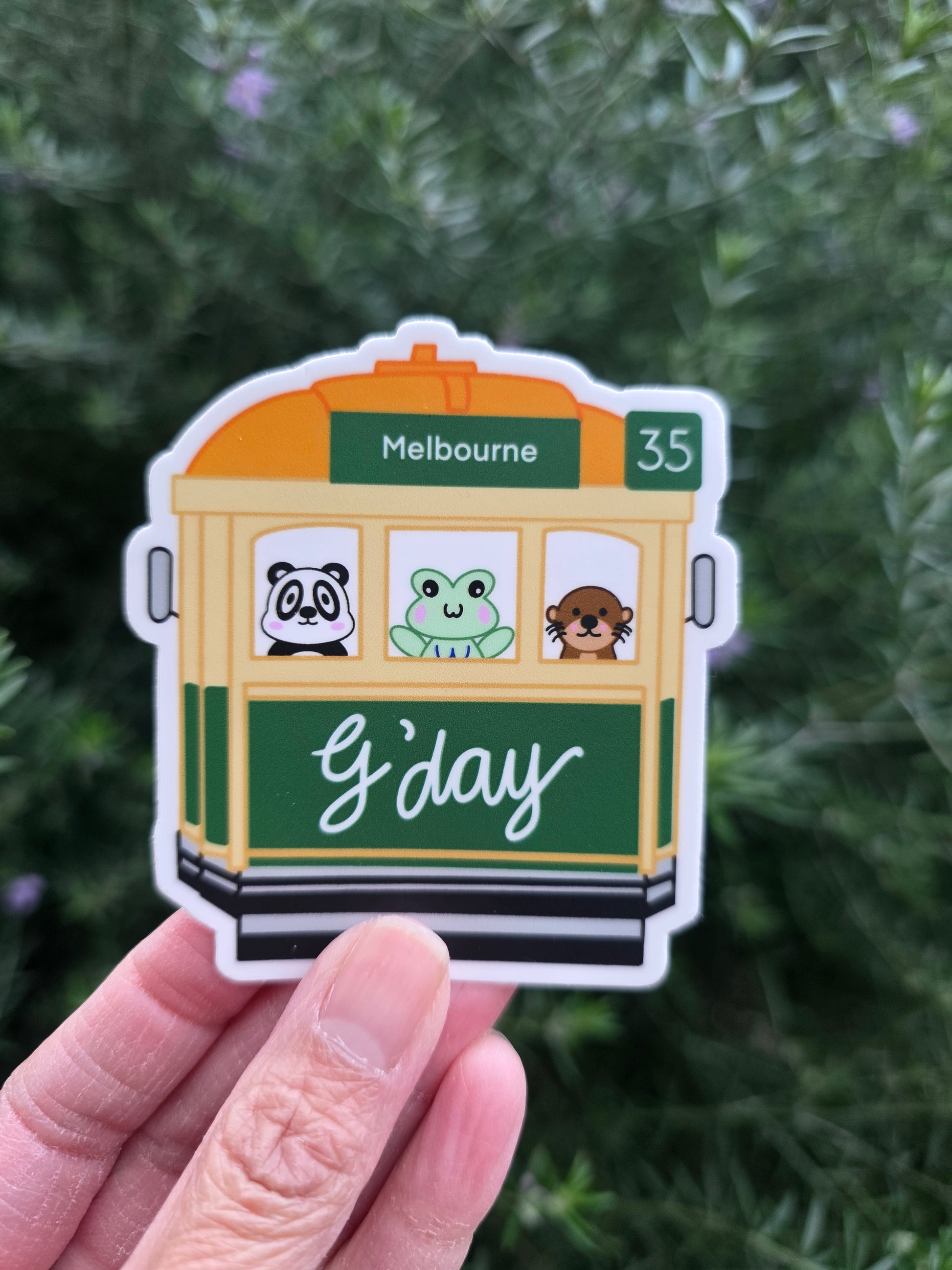 Add a touch of Melbourne charm to your belongings with this adorable waterproof sticker featuring Otteroo, Froggo, and Panda Coco riding the iconic tram. Its durable, weather-resistant design lets you stick it anywhere—from laptops to water bottles—without worry. Brighten your day and showcase your love for Melbourne with this irresistible, versatile decal.