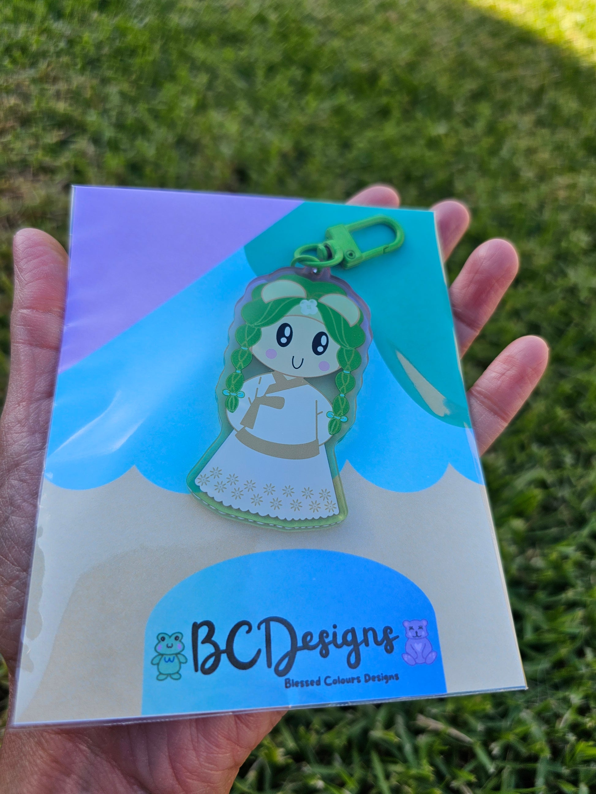 Add a pop of colour to your keys or bag with the Momofoco Hanbok green keychain! Measuring at 70mm, this cute keychain features a green-haired character wearing a traditional hanbok. A perfect accessory to show off your playful and quirky side.