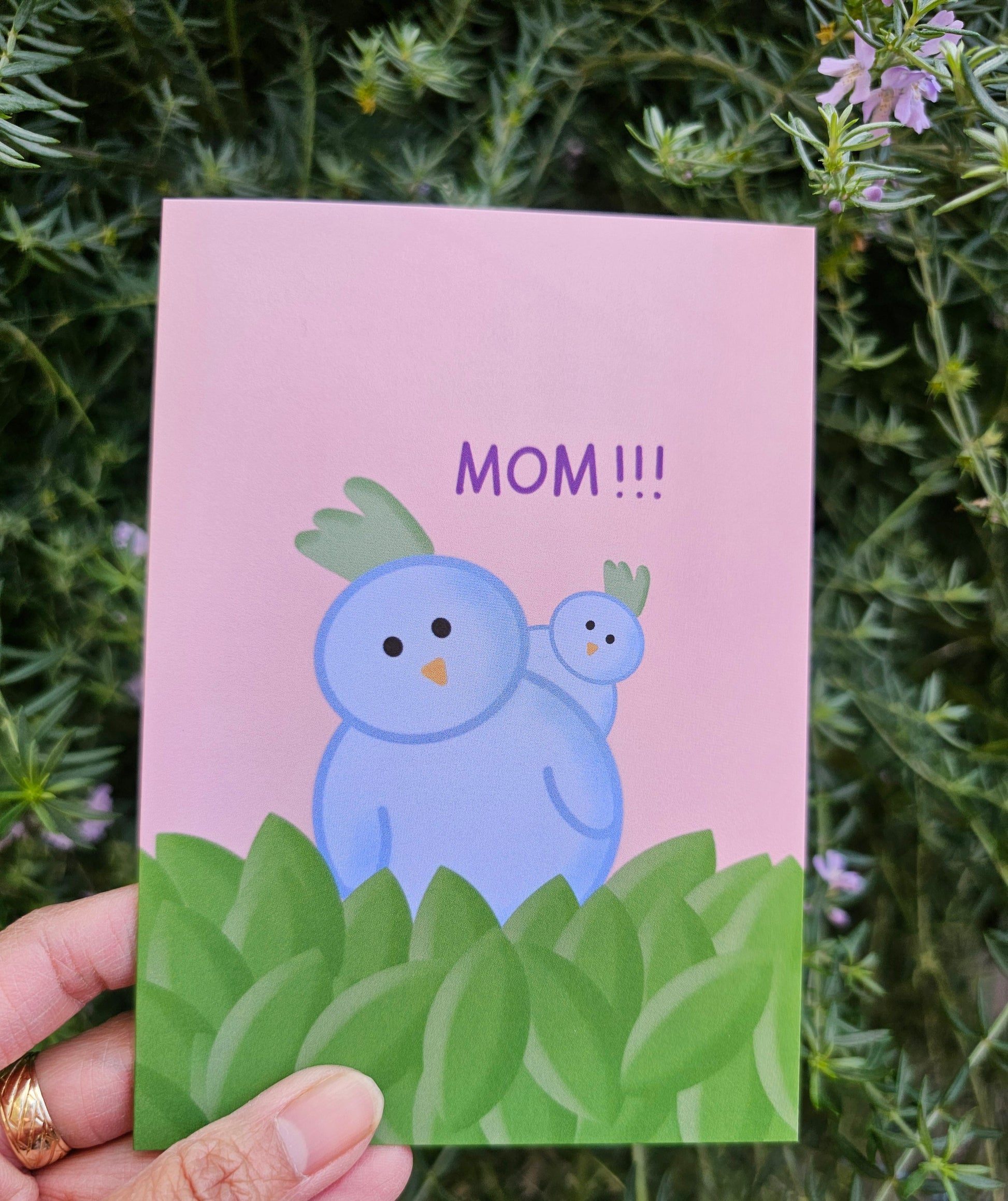 This unique Mother's Day card features our beloved blue chickens Cici and Fifi. Perfect for showing your appreciation to all the special moms in your life: mothers, grandmothers, sisters, friends, and even moms-to-be. Celebrate them with this quirky and charming card.