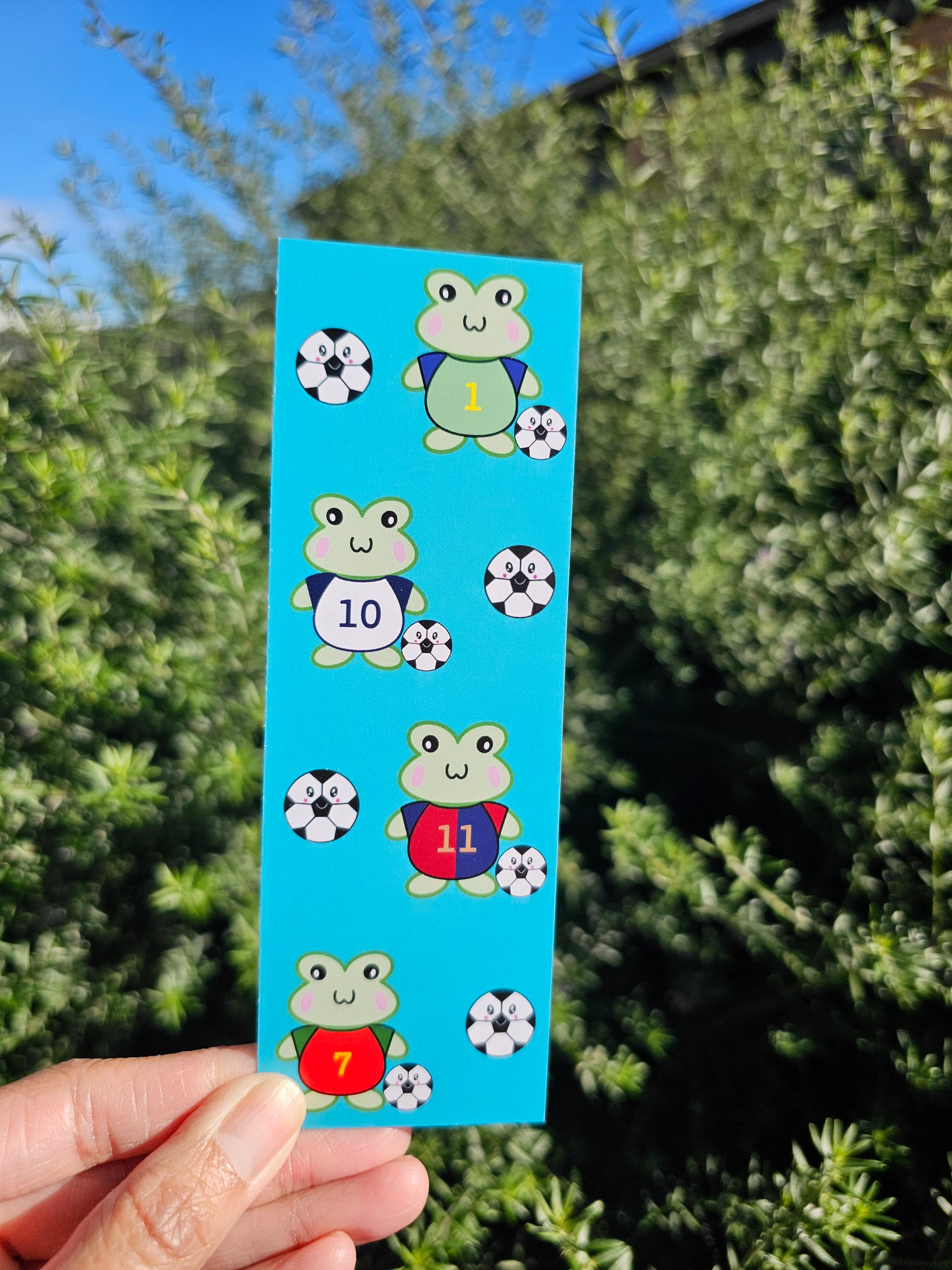 Celebrate your love for soccer with the Soccer Froggo Frogz bookmark! This playful accessory keeps your place in style while showing off your passion for the game. Perfect for fans who want a fun and functional way to mark their spot in books, notebooks, or planners. Add a touch of sporty charm to your reading routine with this unique and eye-catching bookmark.