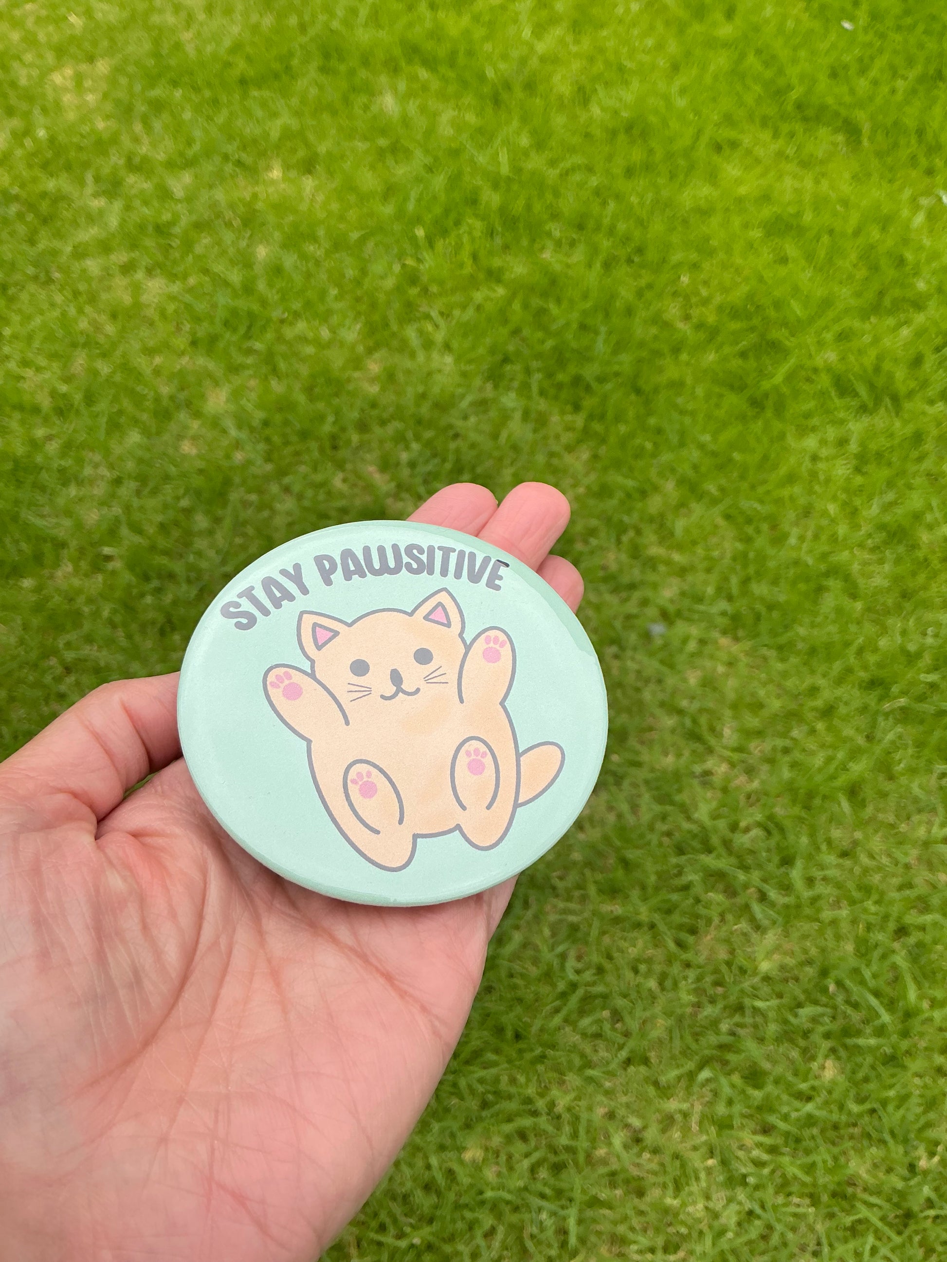 Unleash your inner positivity with our Stay Pawsitive badge pin! Clip it to your bag or accessory for a dose of cuteness and originality everywhere you go. At 3 inches, it's the perfect addition to any outfit. Show off your playful side with our quirky design.